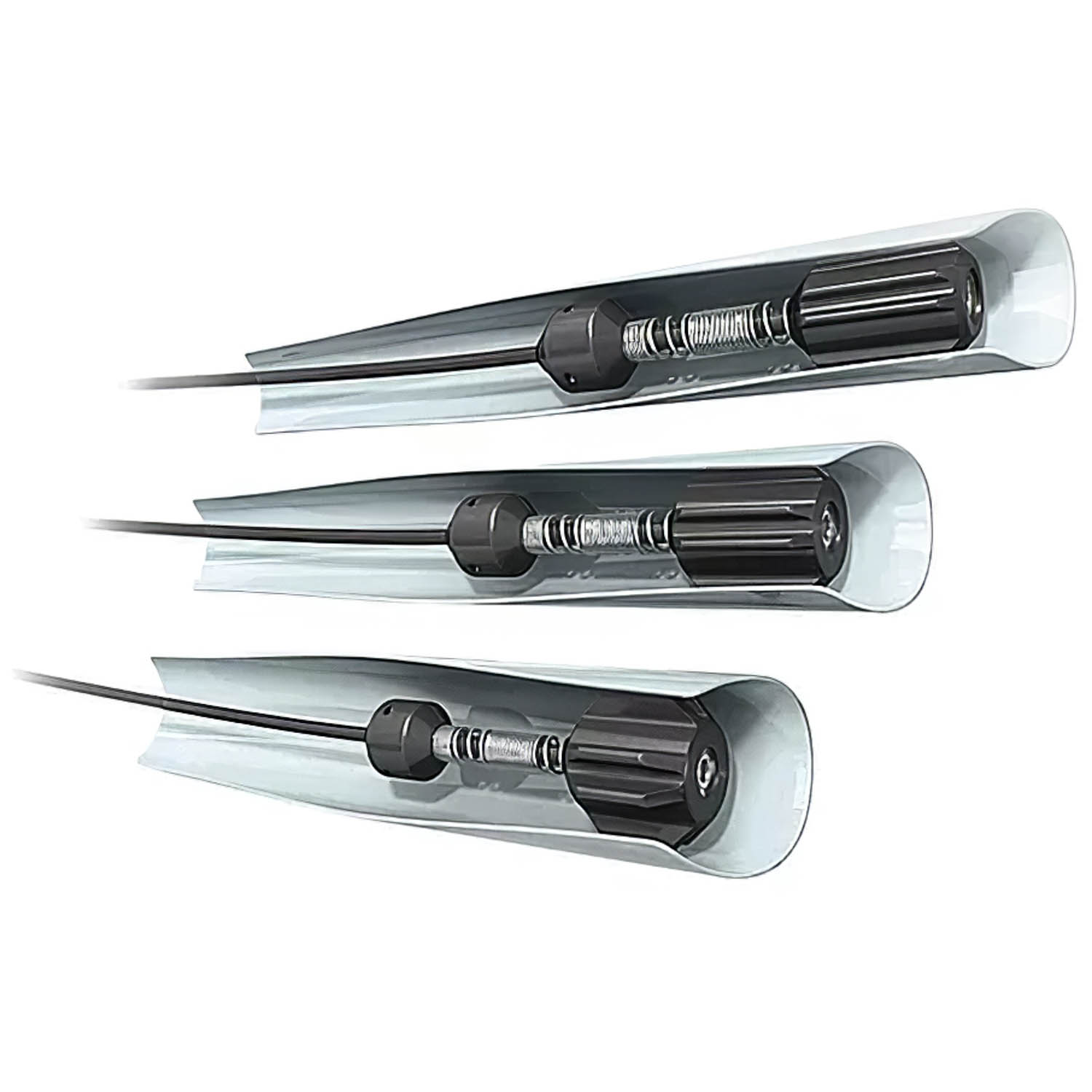 Non è necessario alcuna correzione manuale o con strumenti; semplicemente apri la guida e i tre bracci pivotanti con le ruote sagomate in nylon per adattarsi al diametro della tubazione.