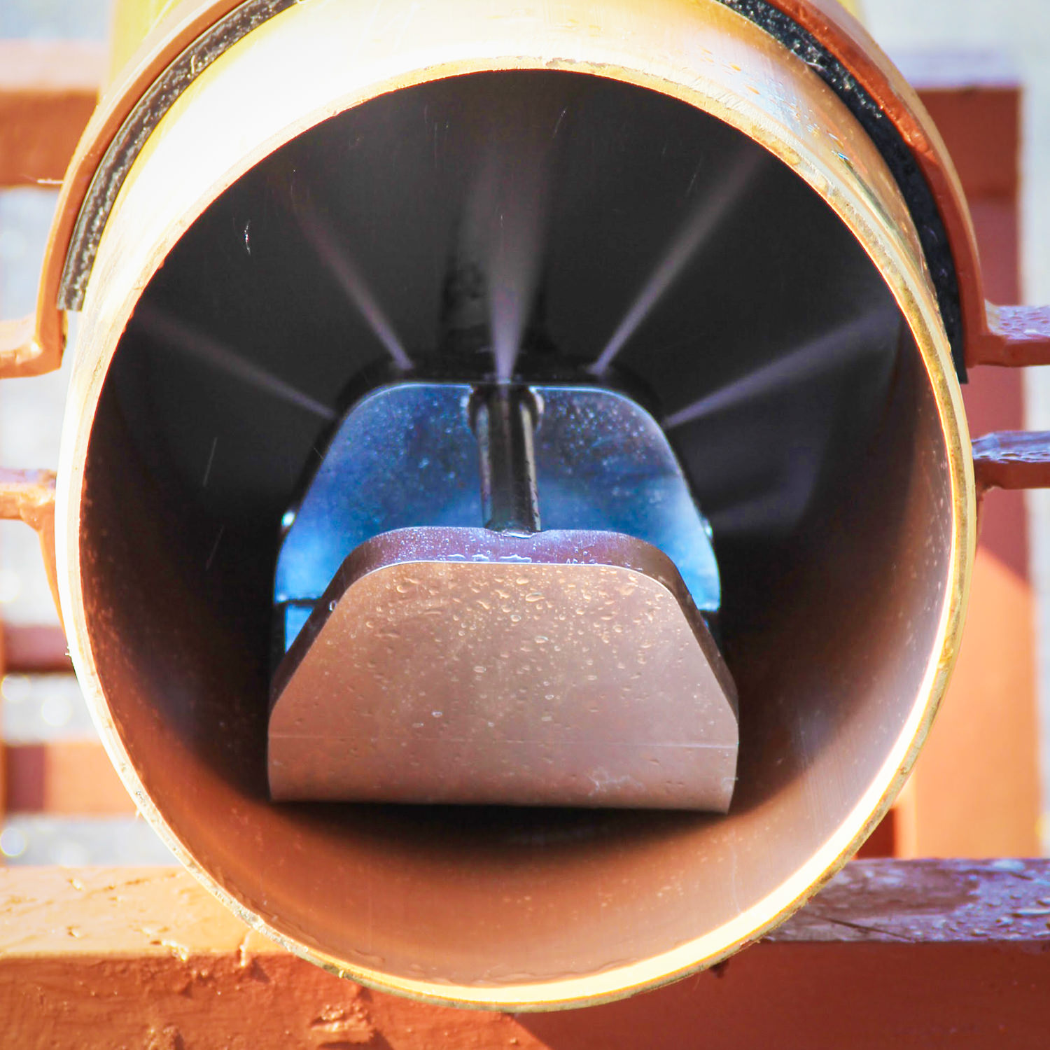 Ugello disabbiatore a slitta con 9 getti orientati verso il fondo della condotta e 7 getti orientati verso l’alto.
