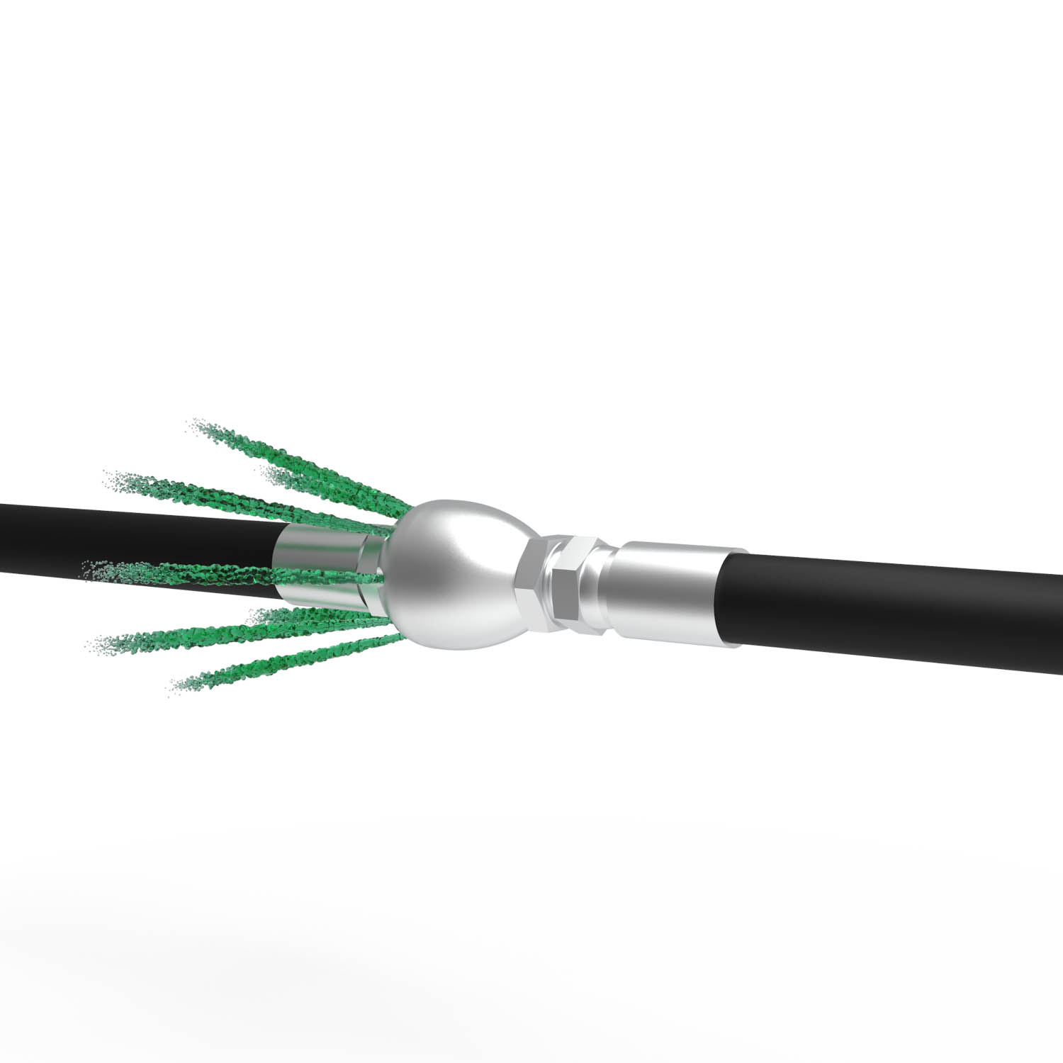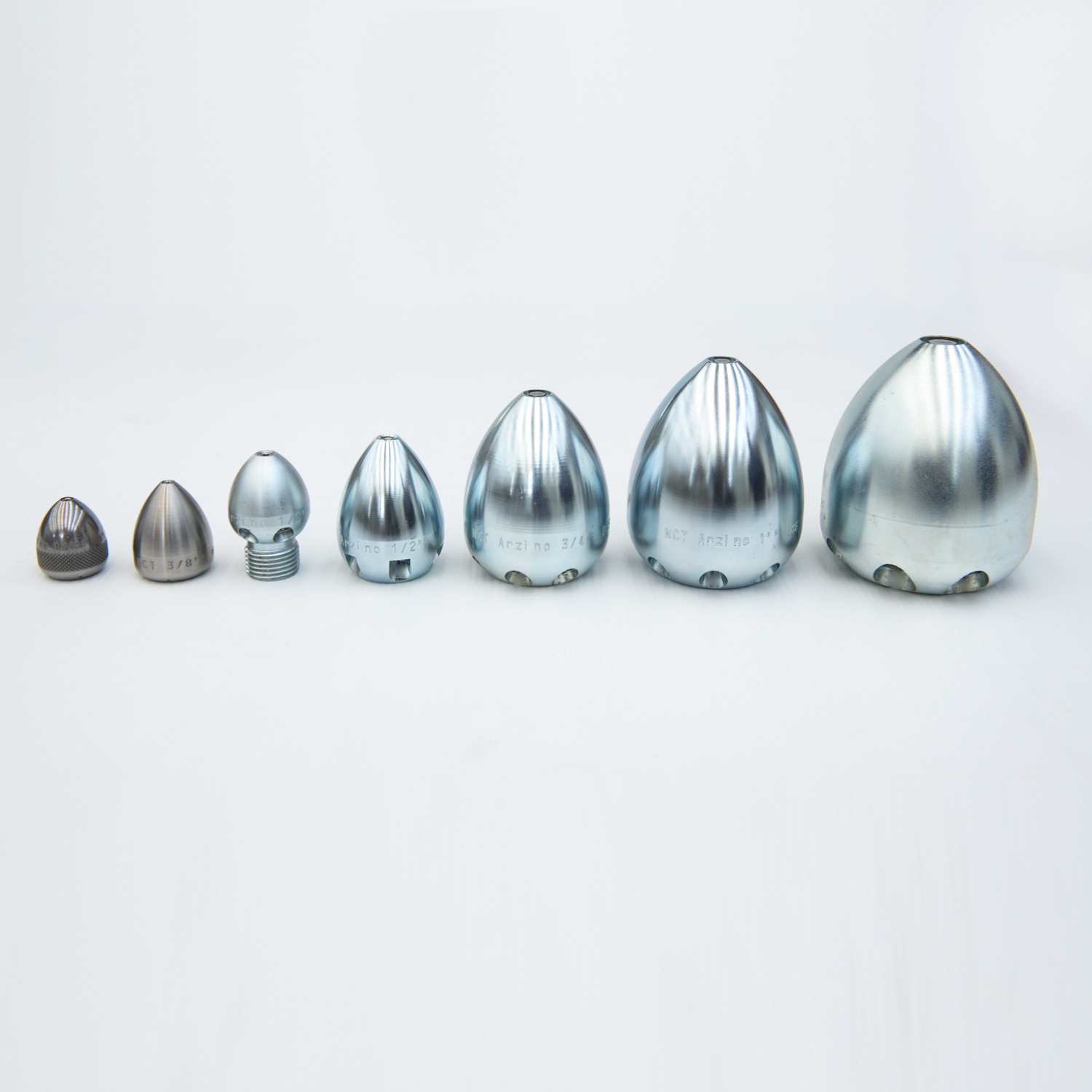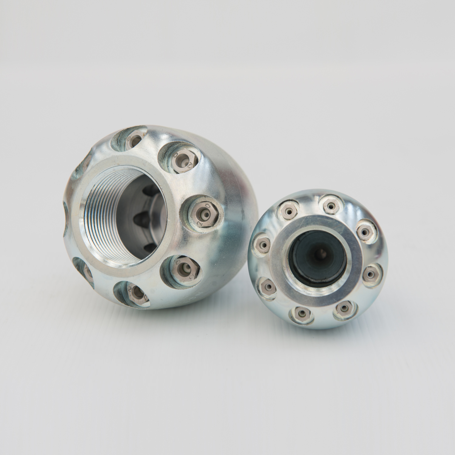 Jede Düse ist mit einer Öffnung vorne versehen, in der eine Verschlusskappe oder ein gelöcherter Einsatz (für den Vorstrahl) eingebaut werden kann. Beide Teile werden mitgeliefert.