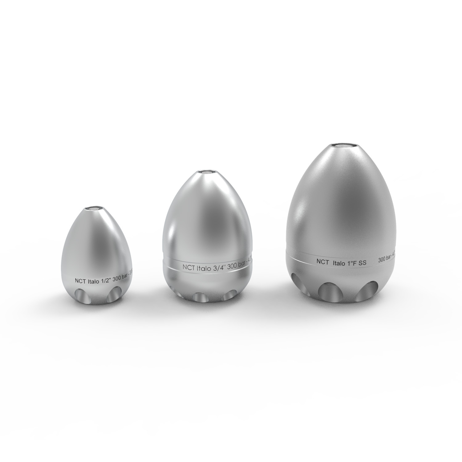 Ei-förmige Düsen mit Widia-Einsätzen bestückt, die an Wasserrückgewinnungsfahrzeuge angeschlossen werden können.