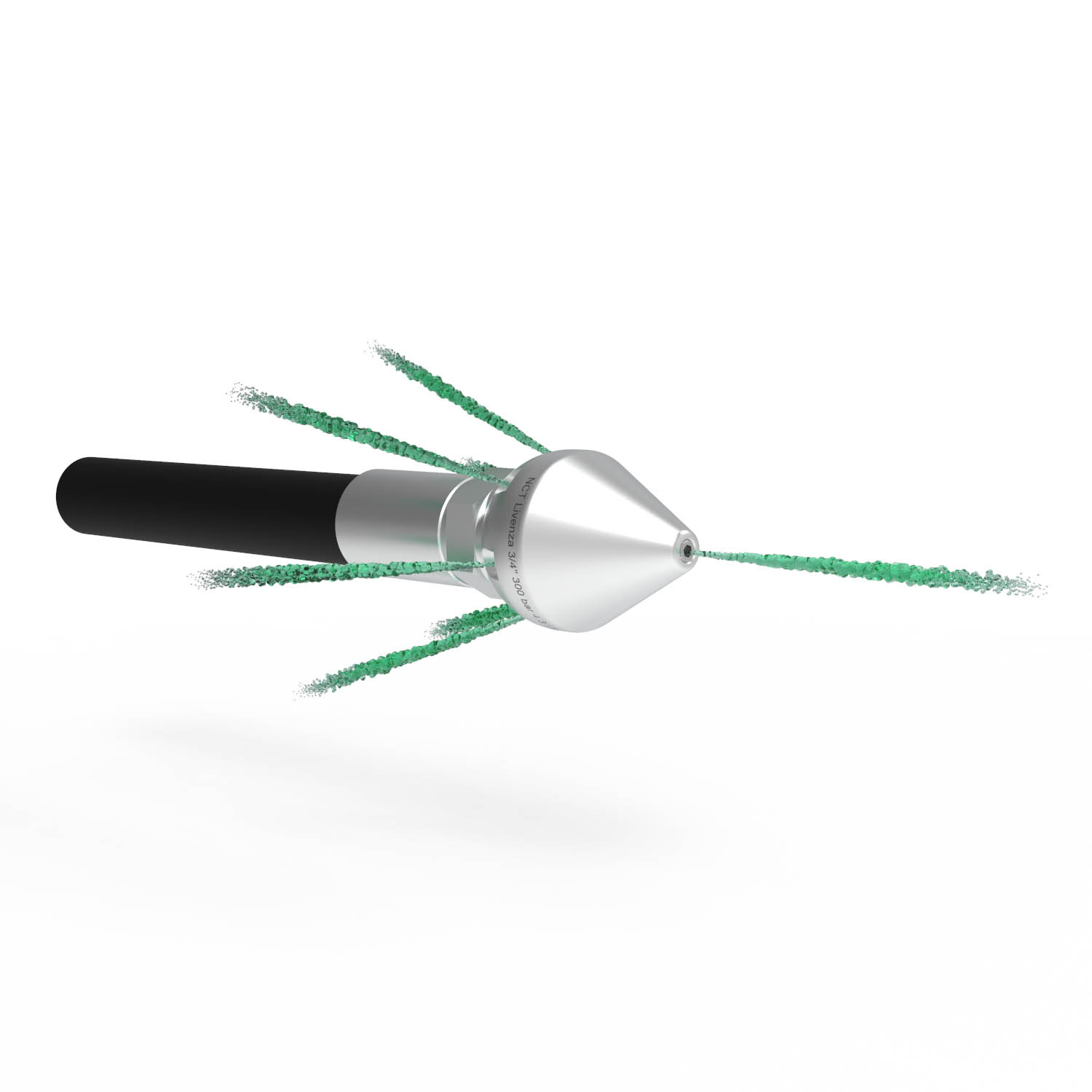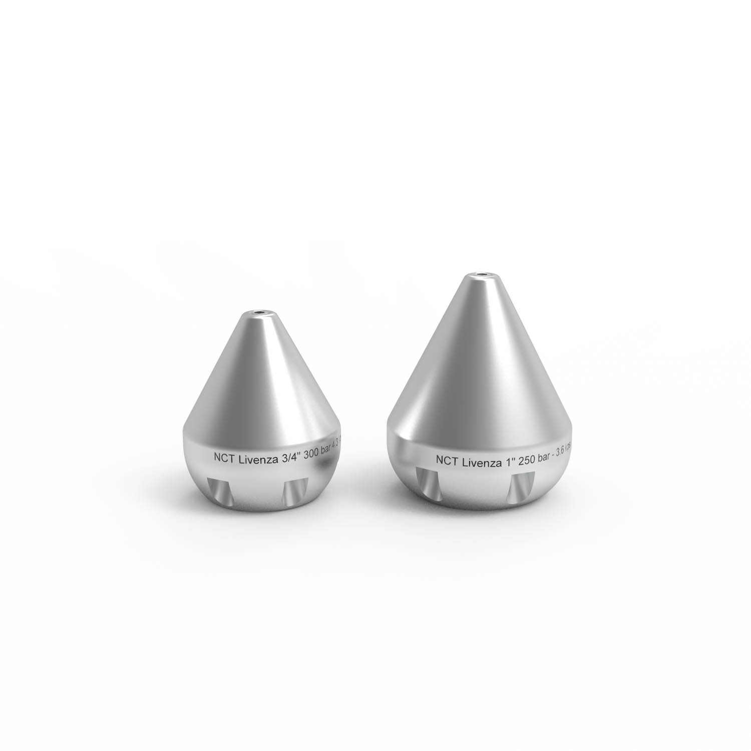 Düsen mit Kegelkopf mit auswechselbaren Einsätzen M6 aus Stahl und Rückstrahlen mit 20° Winkel. Auf Anfrage mit Vorstrahl möglich.