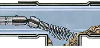 Per la pulizia di scarichi contrapposti. La testa snodata guida il cavo nel tubo di scarico piรน basso<