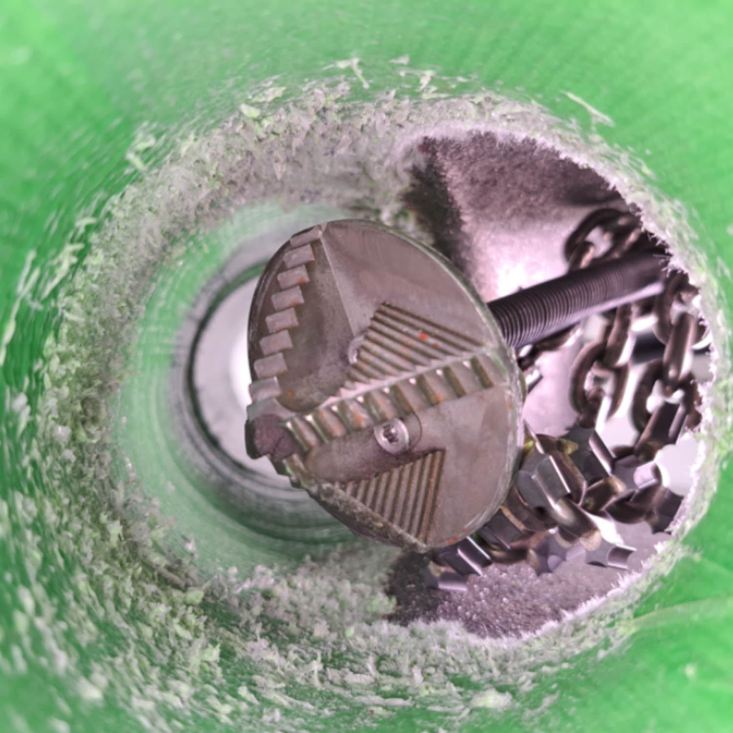 Per tubazioni efficienti dal punto di vista strutturale la Catena Express Drill consente la smerigliatura della calza in eccesso senza la necessità di cambiare utensile. Per chi esegue questo tipo di risanamento con una certa frequenza questo rappresenta un vantaggio notevole!