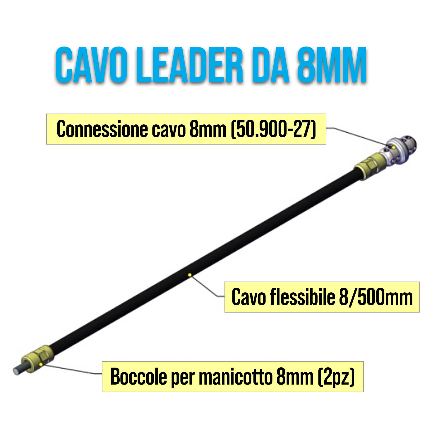 50.CLD08-050 LEADER C/CAVO 8 MM, L=500MM