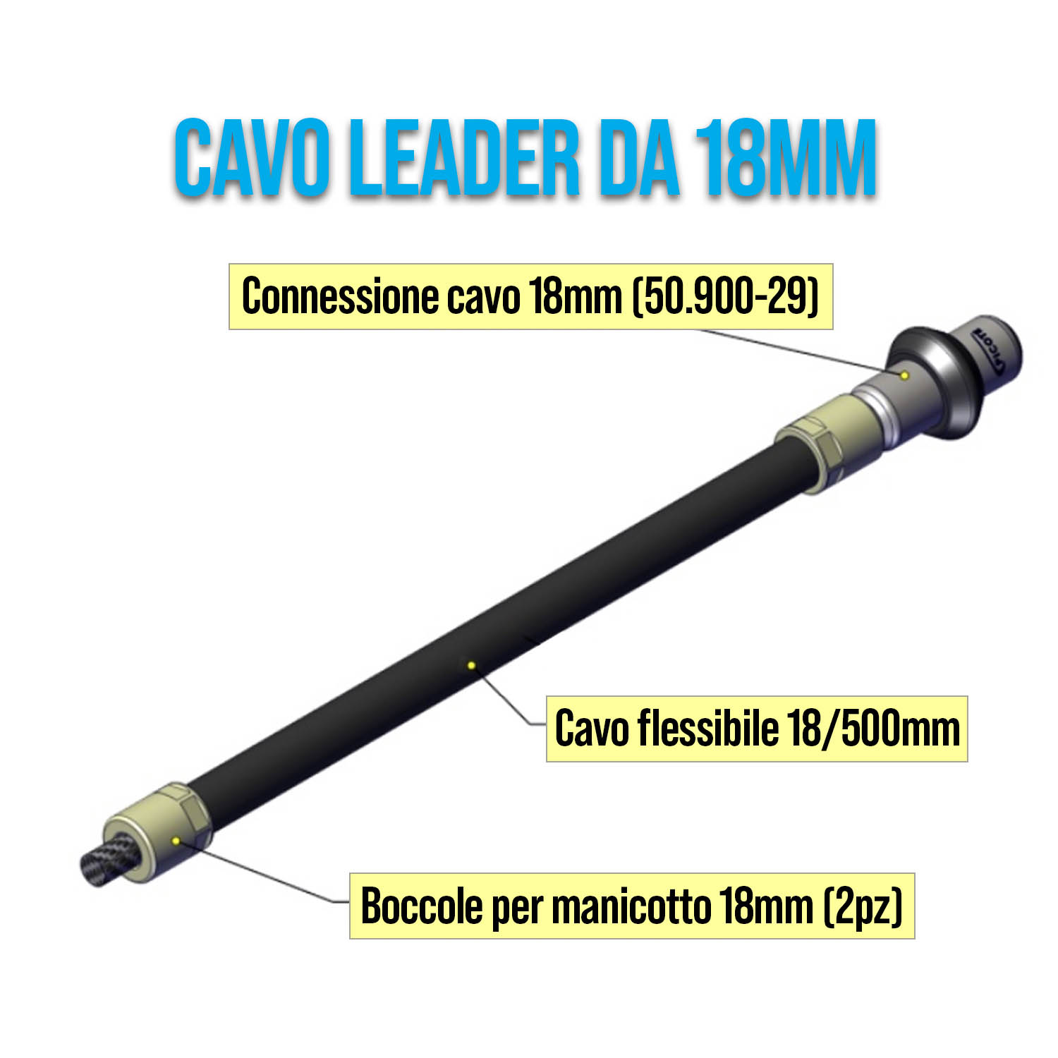 50.CLD18-050 LEADER C/CAVO 18 MM, L=500MM