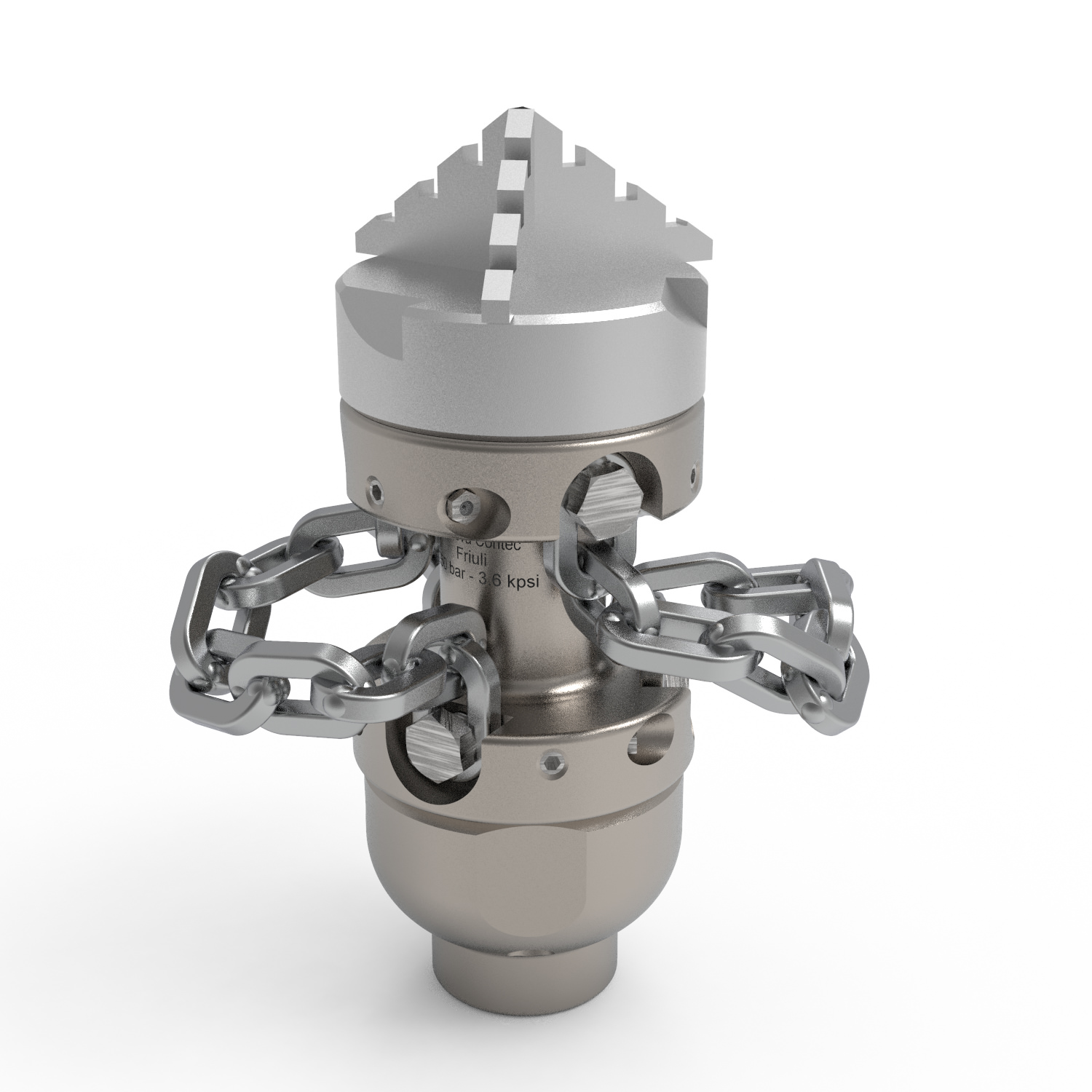 Raccordi: 1″, 1″ 1/4 | DN lavoro: 150-500 mm | Ugelli rotanti a testa intercambiabile con catene ad anelli.