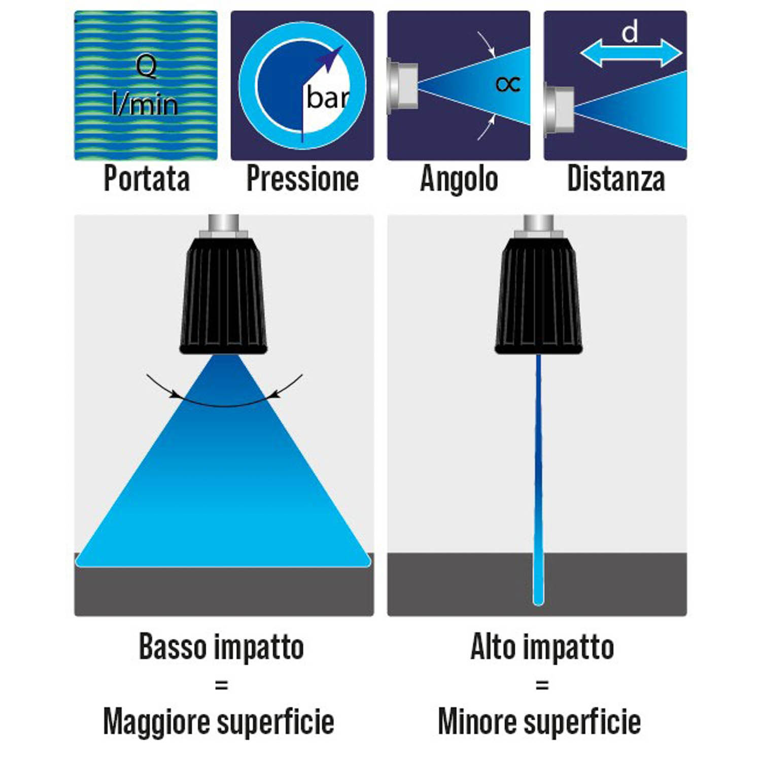 Dalla scelta corretta dell’ugello dipende l’efficacia e il corretto funzionamento dell’attrezzatura ad alta pressione.
