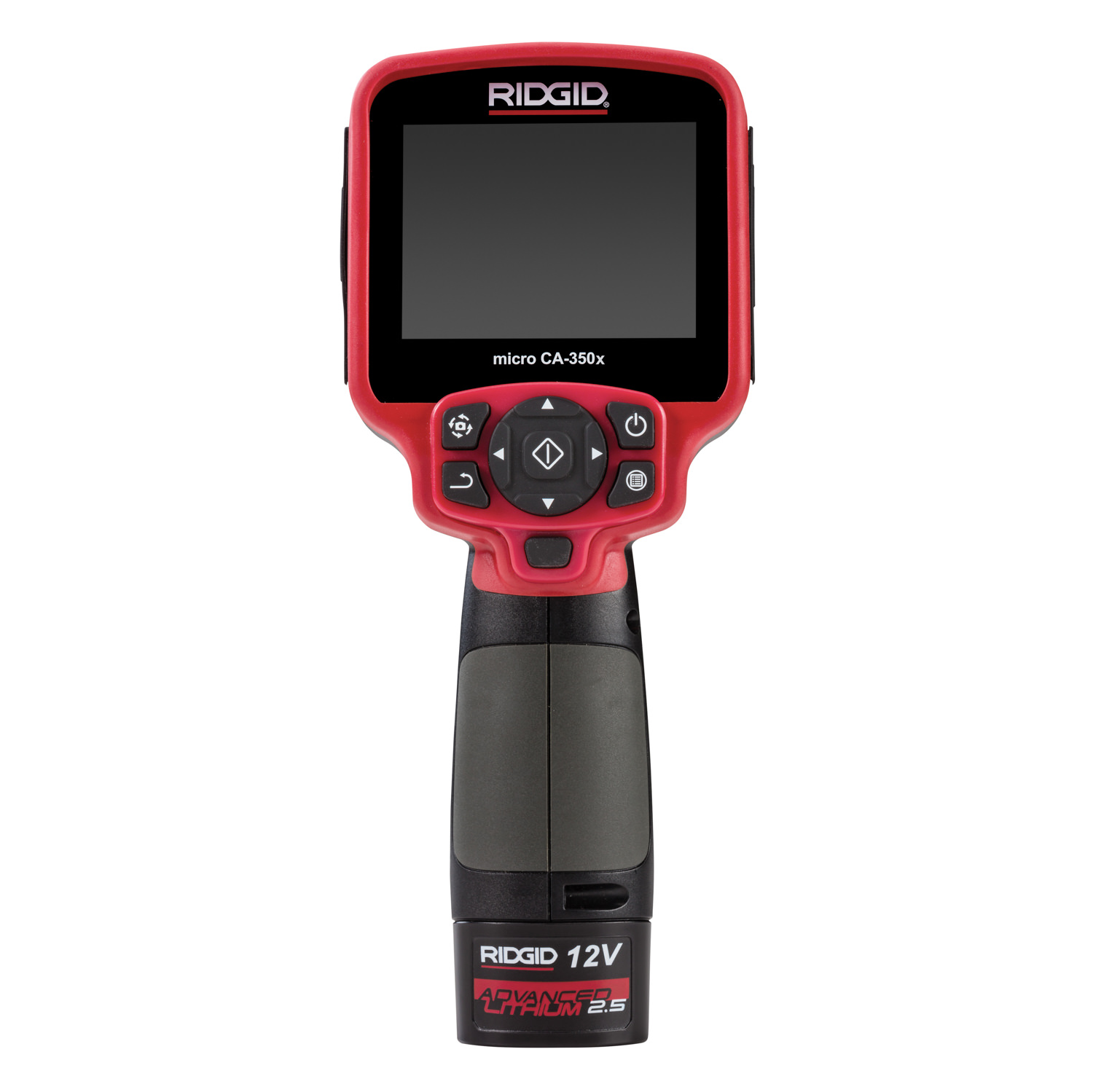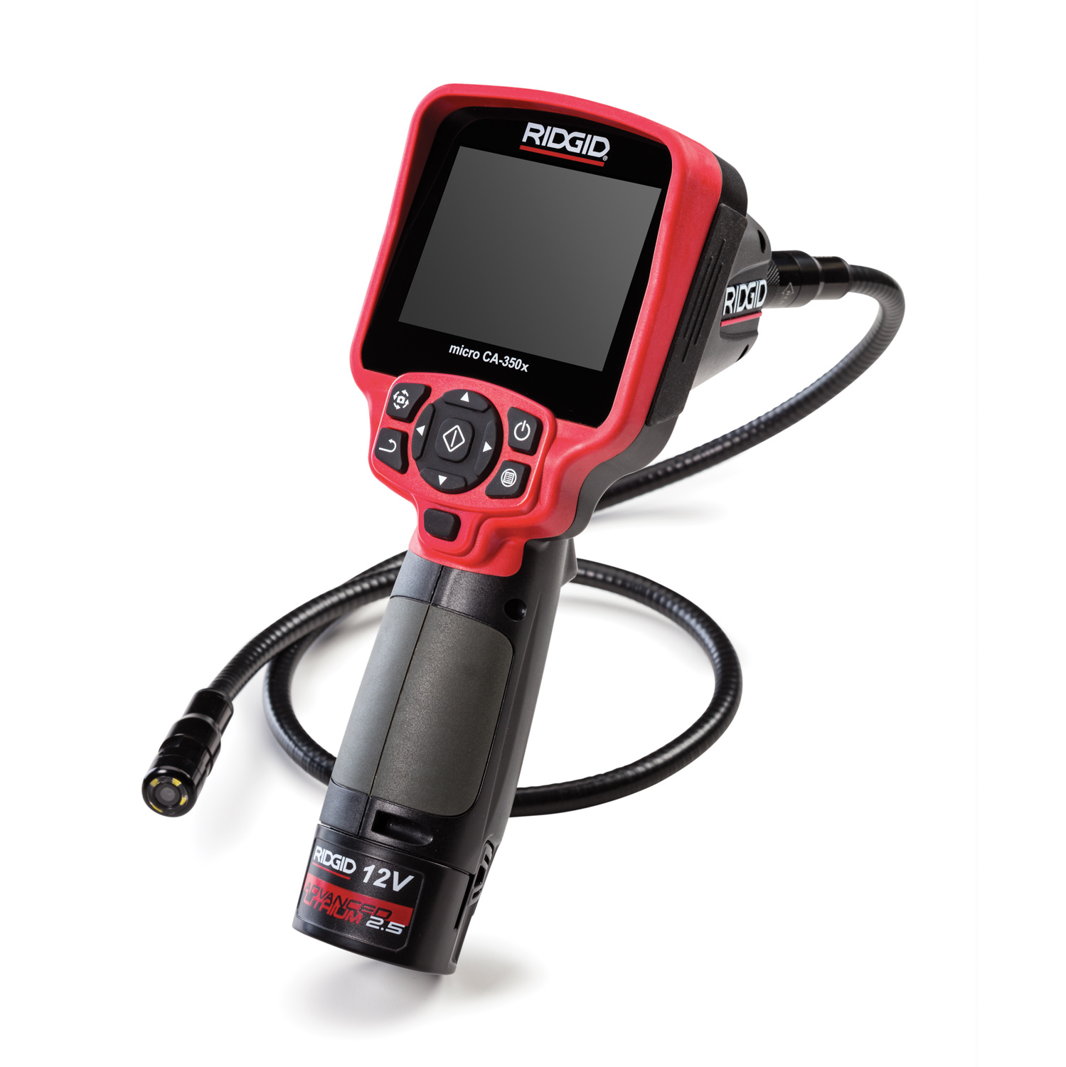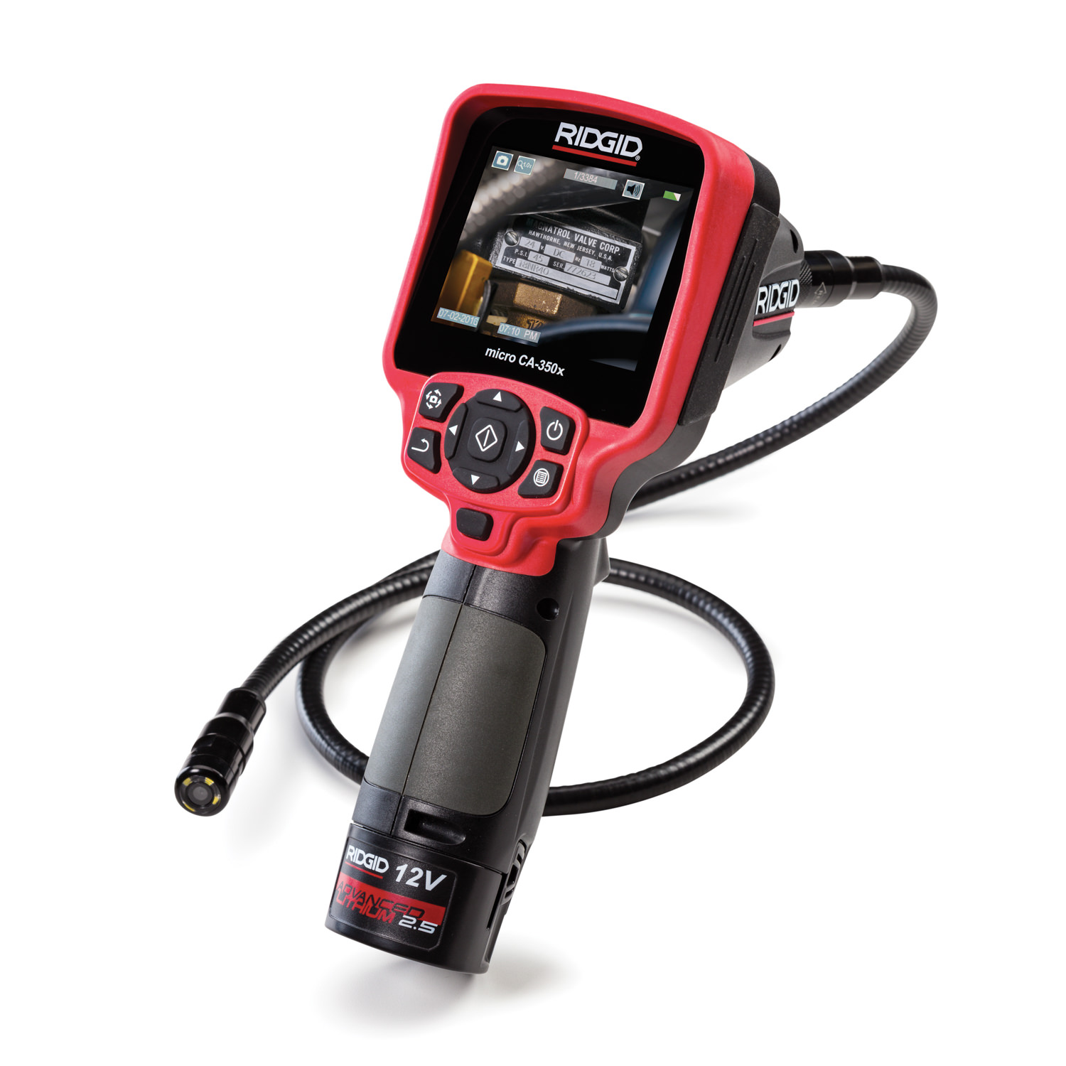 La nuova videocamera di ispezione micro CA-350x RIDGID con Wi-Fi™ e Bluetooth™ per la condivisione istantanea di immagini/video e la visualizzazione live su un secondo schermo, ora con la nuova batteria 12 V.