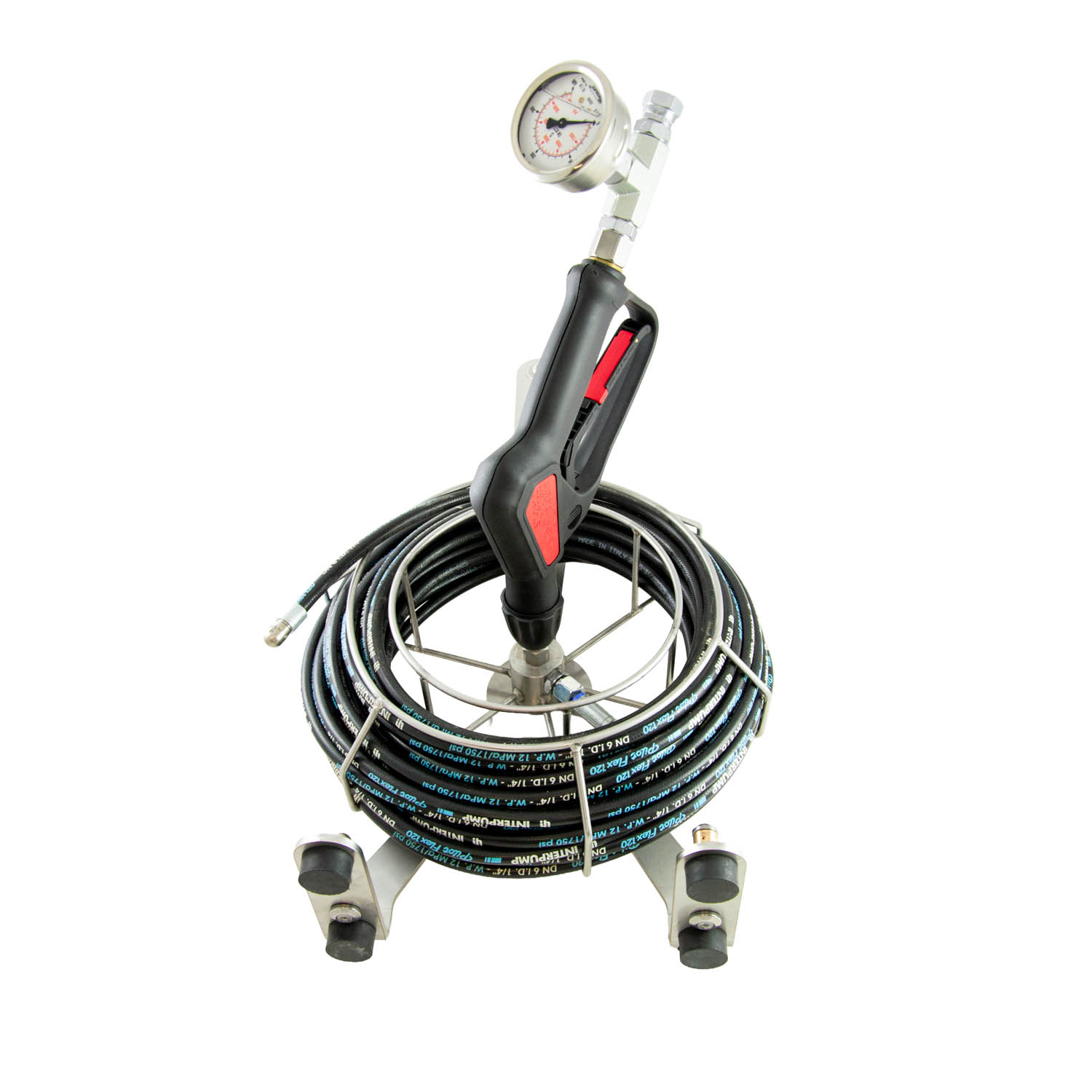 Il manometro consente all’operatore di verificare in ogni momento la pressione nel tubo di alimentazione, segnalando quando è necessario scaricarla. La pistola permette di pressurizzare il tubo solo quando richiesto e di inviare l’acqua all’ugello in totale controllo. I raccordi rapidi assicurano un collegamento veloce e sicuro tra pistola e naspo. Il sistema è progettato per garantire massima ergonomia, sicurezza e facilità di trasporto. Dotato di quattro nippli (da 1/8” oppure da ¼”) per avere sempre a disposizione i diversi ugelli.