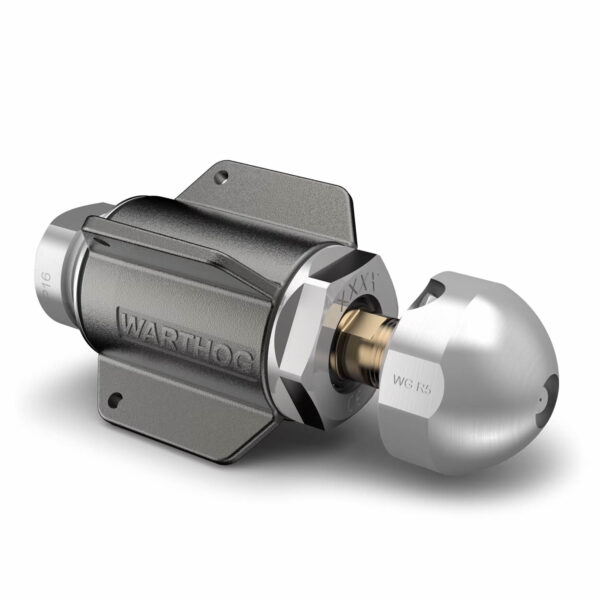 Componente di sicurezza, che viene interposta tra ugello e tubo flessibile ad alta pressione, per evitare la possibilità di inversione della direzione della spinta e dell’avanzamento dell’ugello. Le conseguenze di questa eventualità sarebbero estremamente pericolose per gli operatori e per chiunque si trovasse nelle vicinanze del pozzetto, ancorché a distanza di sicurezza.